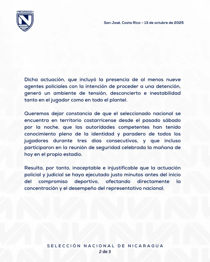 Horas después del incidente, la Federación Nicaragüense de Fútbol (FENIFUT) emitió un comunicado oficial expresando su enérgica protesta ante las autoridades de Costa Rica y la FIFA, calificando la actuación como “absolutamente inapropiada”.