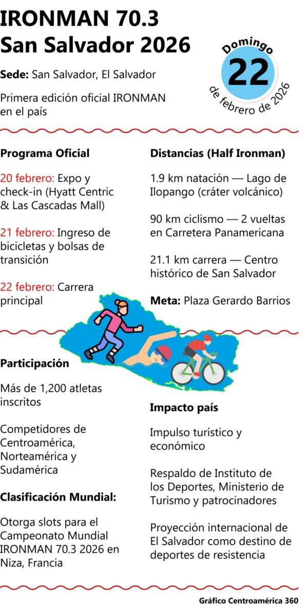Delegaciones internacionales ya se encuentran en el país para participar en el Ironman 70.3 San Salvador, que reunirá a más de 1,200 atletas. La competencia se desarrollará en el lago de Ilopango y la capital.