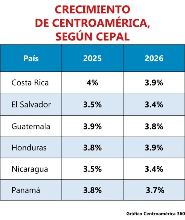 Guatemala le seguirá de cerca, con crecimientos proyectados de 3.9 % y 3.8 %, respectivamente, consolidándose como una de las economías más resilientes de la subregión. Panamá también mantendría un ritmo sólido, con tasas de 3.8 % en 2025 y 3.7 % en 2026, mientras que Honduras avanzaría entre 3.8 % y 3.9 % en el mismo período.