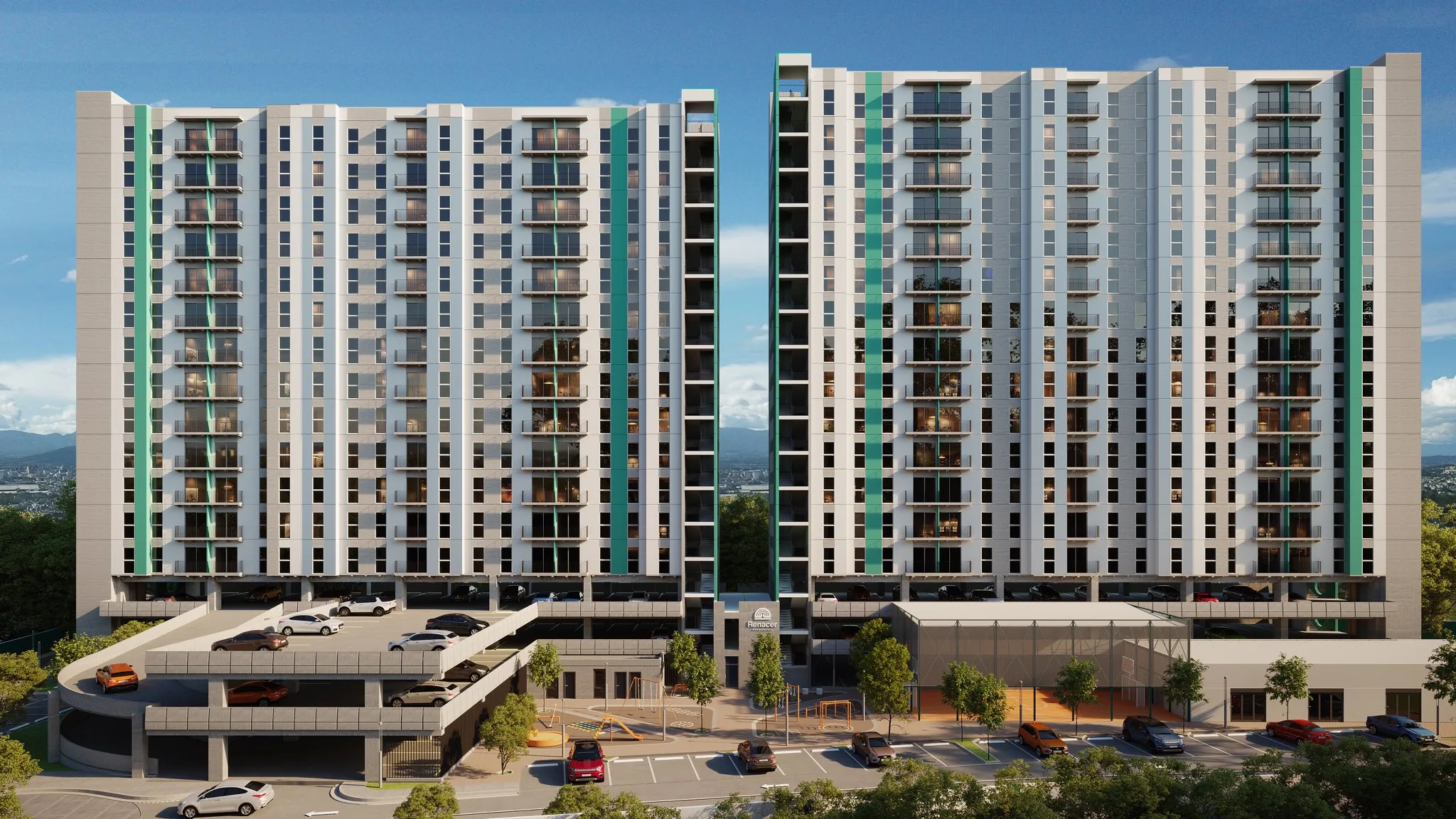 Render de edificios que se construyen en un distrito de San Salvador para fines habitacionales. /Fotografía del director de la Opamss, Luis Rodríguez