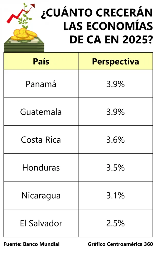 El Banco Mundial proyecta que Panamá y Guatemala serán las economías de mayor dinamismo en Centroamérica durante 2025, con una expansión estimada de 3.9 % en ambos casos.