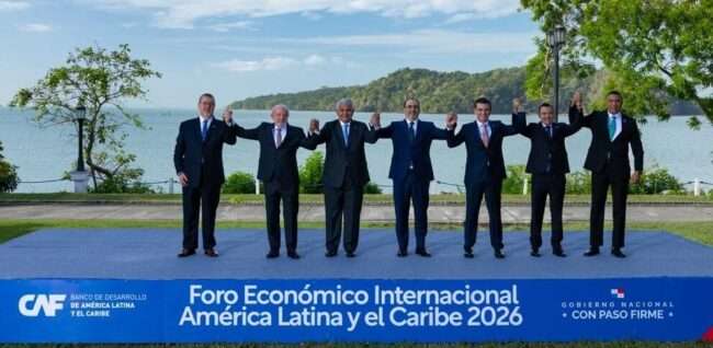 En el foro participan los presidentes de Panamá, José Raúl Mulino; Guatemala, Bernardo Arévalo; Brasil, Luiz Inácio Lula da Silva; Colombia, Gustavo Petro; Ecuador, Daniel Noboa; y Bolivia, Rodrigo Paz. También asisten el primer ministro de Jamaica, Andrew Holness, y el gobernante electo de Chile, José Antonio Kast.