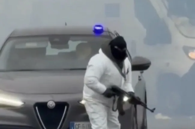 Un peliculesco asalto ocurrió la mañana de este lunes en Italia, done un comando armado atacó vehículos blindados en una carretera.