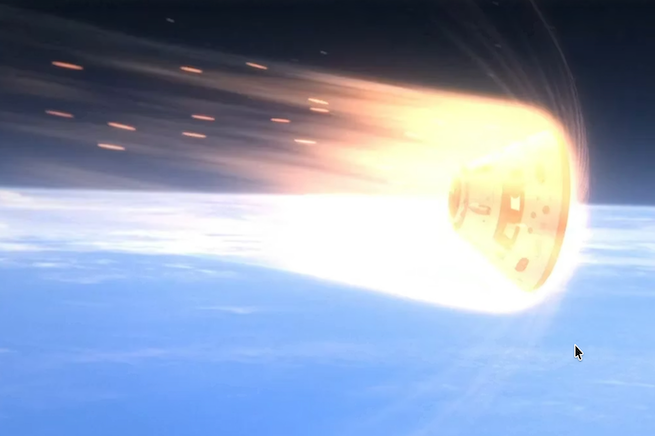 La cápsula Orión reentrará en la atmósfera moviéndose a más de 30 veces la velocidad del sonido. Entonces, una onda de choque envolverá la nave espacial, calentando el aire a 10 000 °C o más, aproximadamente el doble de la temperatura de la superficie del Sol.