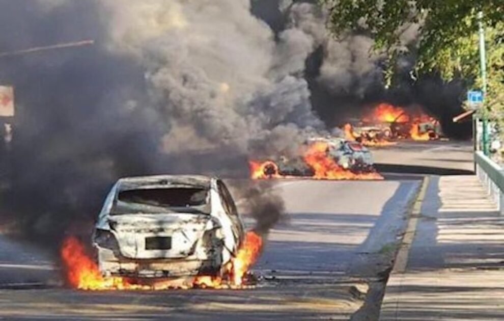 Sujetos armados atravesaron vehículos en carreteras clave. Luego incendiaron autos, camiones y autobuses para impedir el paso.