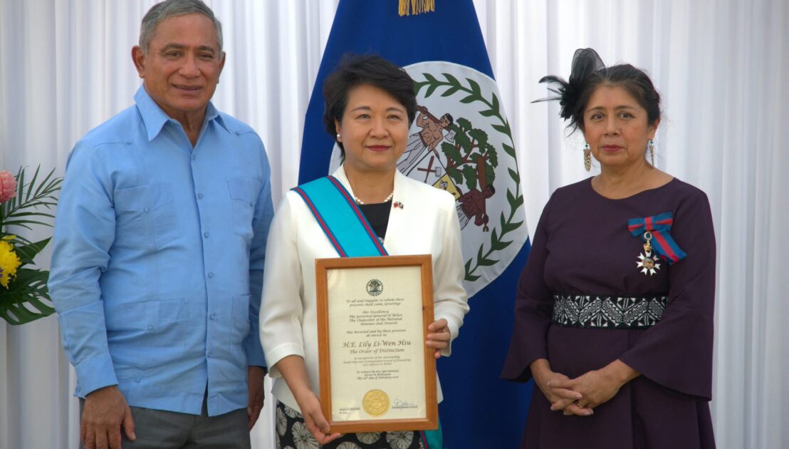 El gobierno de Belice concedió la Orden de Distinción a Lily Li-Wen Hsu, embajadora de la República de China (Taiwán), por su servicio diplomático y su aporte al desarrollo nacional.