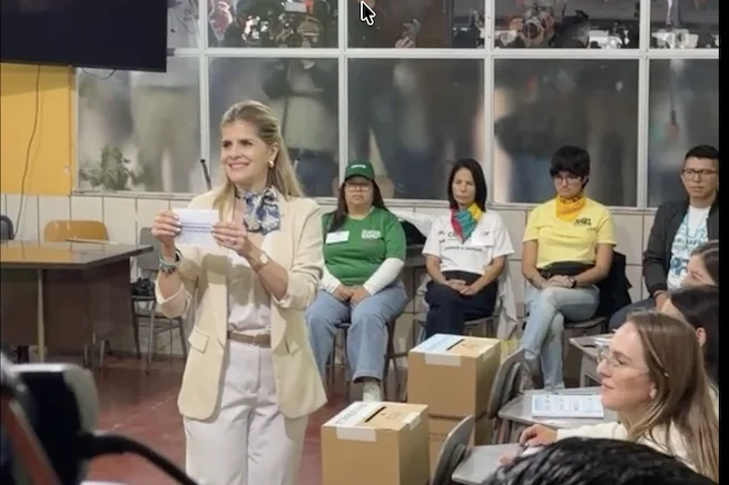 Laura Fernández, candidata oficialista y favorita en las encuestas, votó alrededor de las 7:00 a.m. en la Escuela Julián Volio, ubicada en El Carmen de Cartago.
