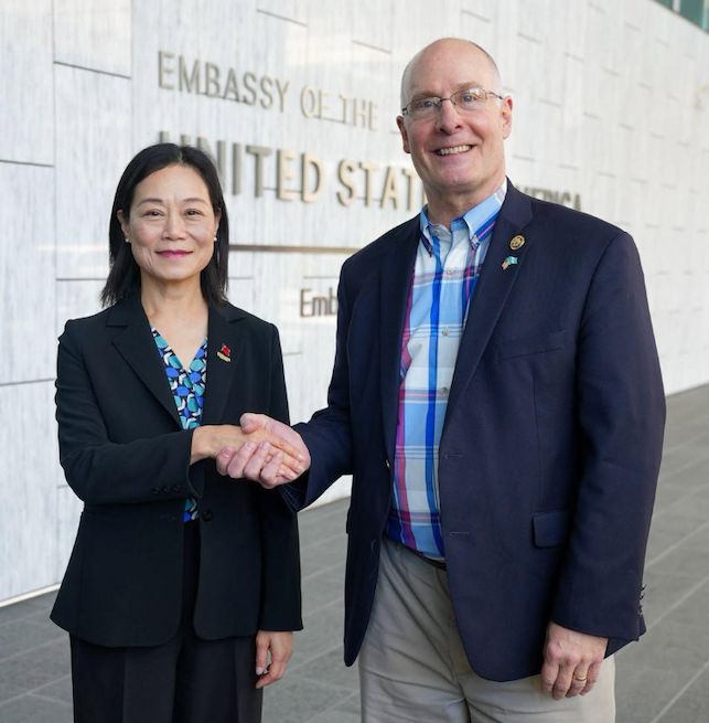 El congresista estadounidense John Moolenaar se reunió con la embajadora taiwanesa en Guatemala, Vivia Chang.