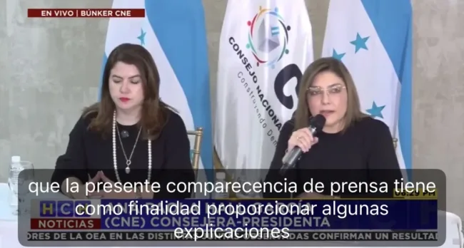 Las consejeras del Consejo Nacional Electoral (CNE), Ana Paola Hall y Cossette López, justificaron este sábado la lentitud en la divulgación del escrutinio preliminar. Ambas señalaron que “problemas ajenos al CNE” afectaron la transmisión de resultados, en medio de un creciente reclamo político y de la petición del partido Libre para impugnar las elecciones presidenciales.