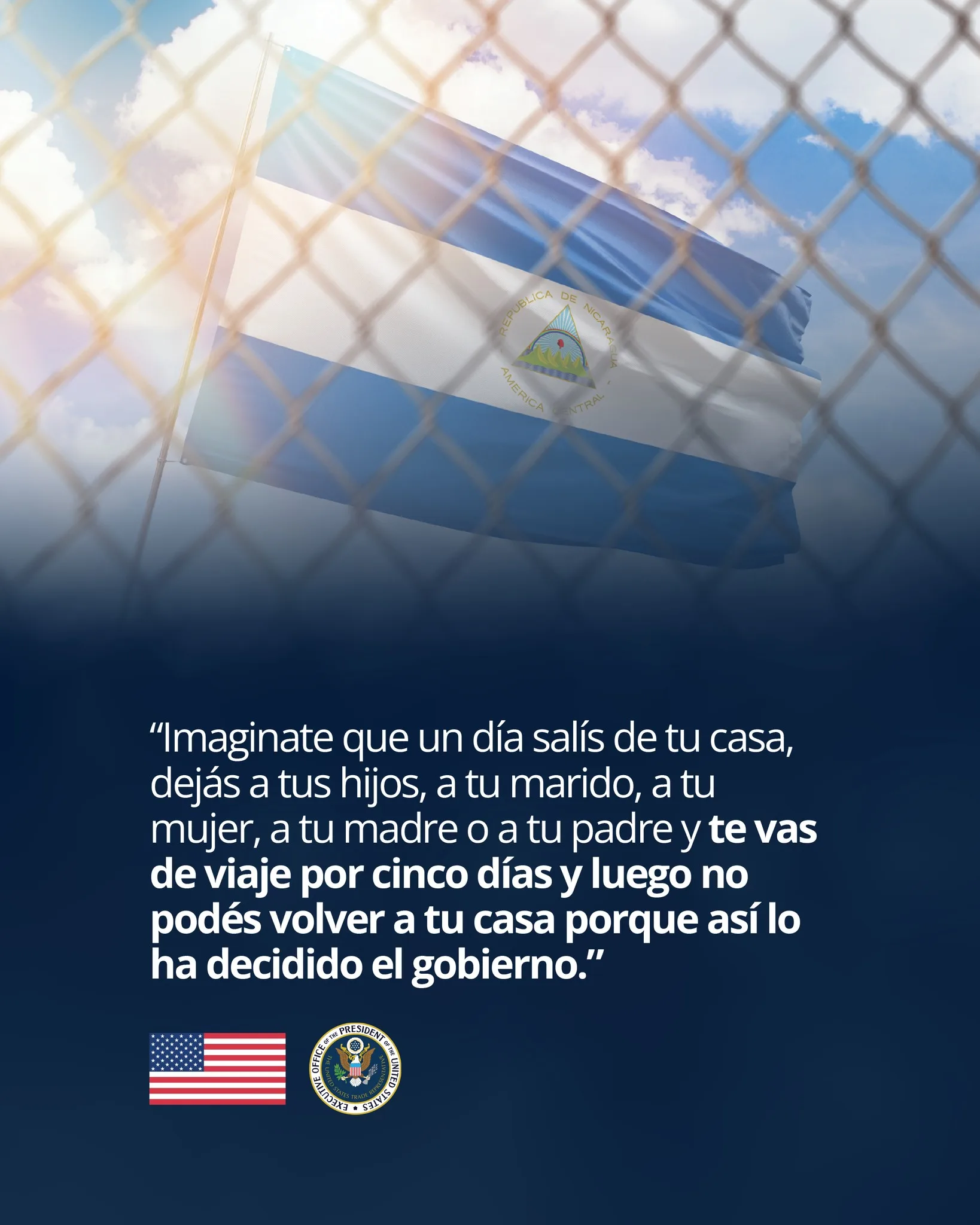 Las publicaciones señalan además las prohibiciones de retorno impuestas a cientos de nicaragüenses. “Imagínate que un día salís de tu casa… y luego no puedes volver porque así lo decidió el gobierno”, cita uno de los mensajes de la campaña, aludiendo a los testimonios de personas impedidas de ingresar al país.