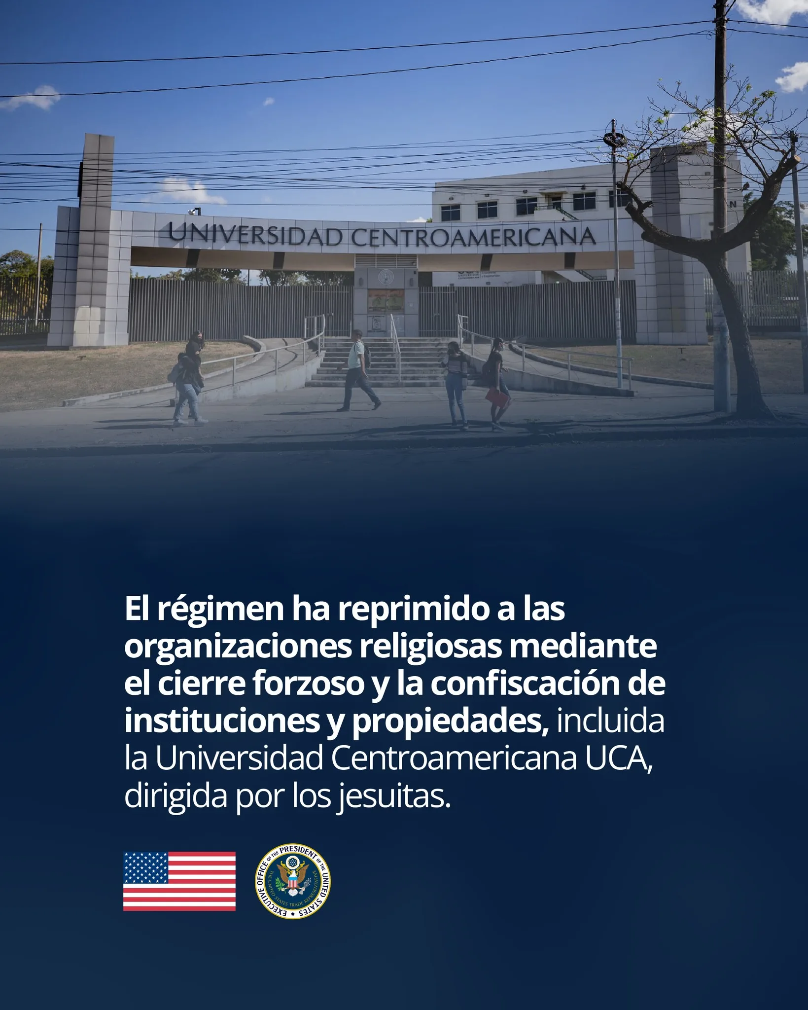De acuerdo con la USTR, los ataques incluyen cierres, confiscaciones y restricciones directas contra instituciones religiosas, entre ellas propiedades de iglesias estadounidenses y la confiscada Universidad Centroamericana (UCA), administrada por la Compañía de Jesús.