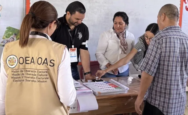 La Misión de Observación Electoral (MOE) de la OEA desplegó 101 observadores en los 18 departamentos del país. Su presencia buscó monitorear el desarrollo del proceso, así como registrar incidentes y evaluar la organización del CNE.