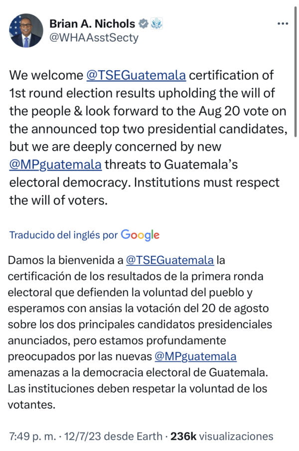 — US Embassy Guatemala (@usembassyguate) July 13, 2023