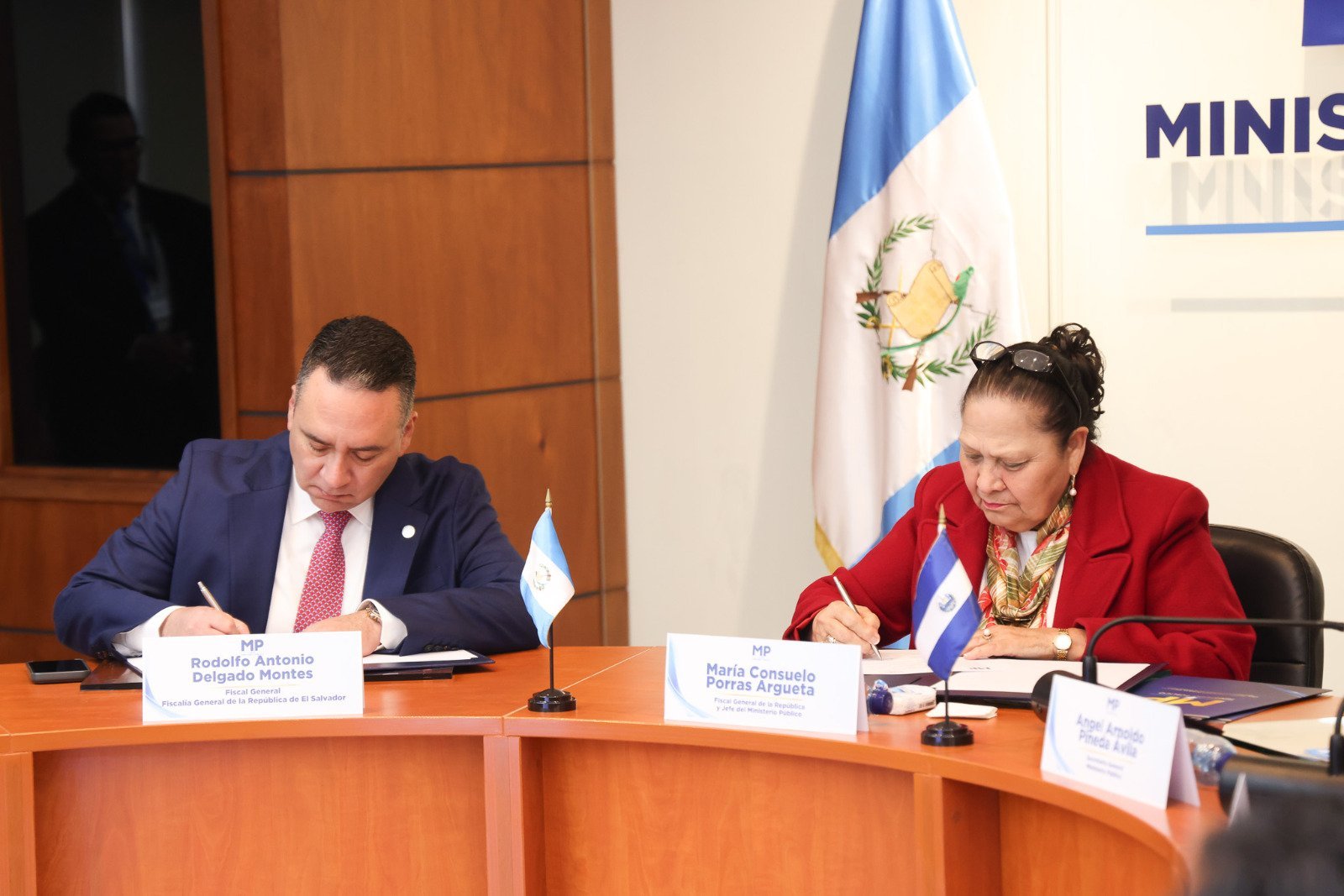 Las fiscalías de El Salvador y Guatemala firmaron un convenio para cooperar de forma técnica y tecnológica. Según el fiscal salvadoreños este marco les permitirá “colocarnos al mismo nivel de ustedes” en procesos digitales para lograr “una transformación digital”. Además, Delgado dijo que fue un “verdadero placer” ser recibidos por Porras.