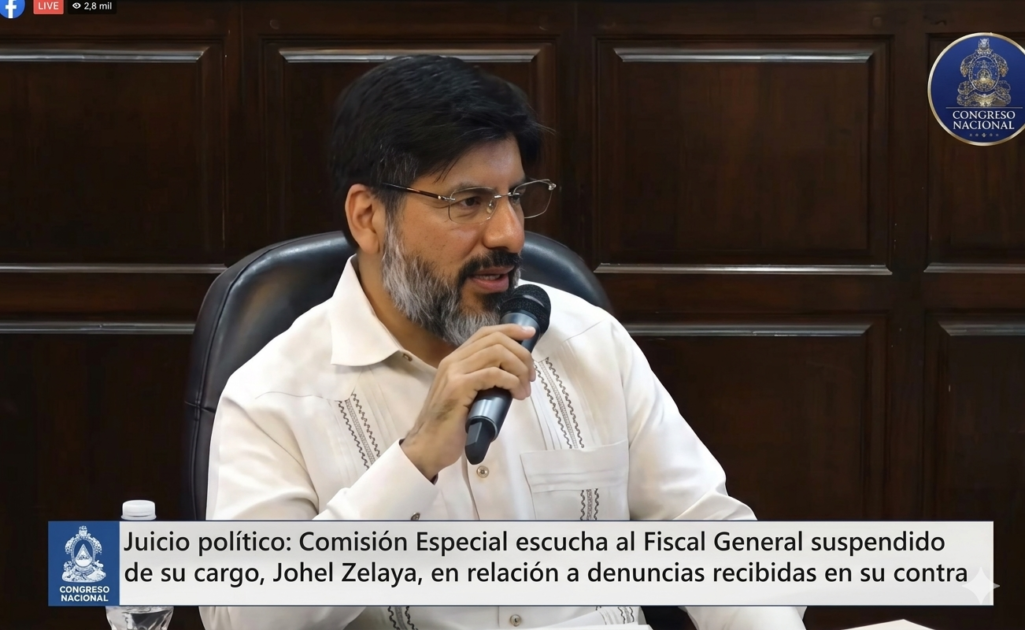 El fiscal general suspendido, Johel Zelaya, compareció ante la Comisión de Juicio Político del Congreso Nacional de Honduras.