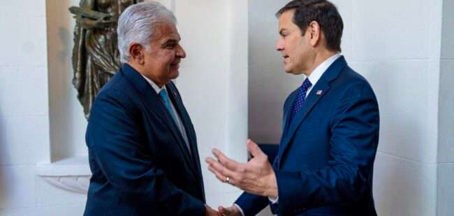 El presidente de Panamá, José Raúl Mulino, sostuvo una reunión con el secretario de Estado de Estados Unidos, Marco Rubio, en el marco del Foro Económico Mundial en Davos, Suiza. El encuentro se realizó previo a la intervención del presidente estadounidense Donald Trump en el foro.