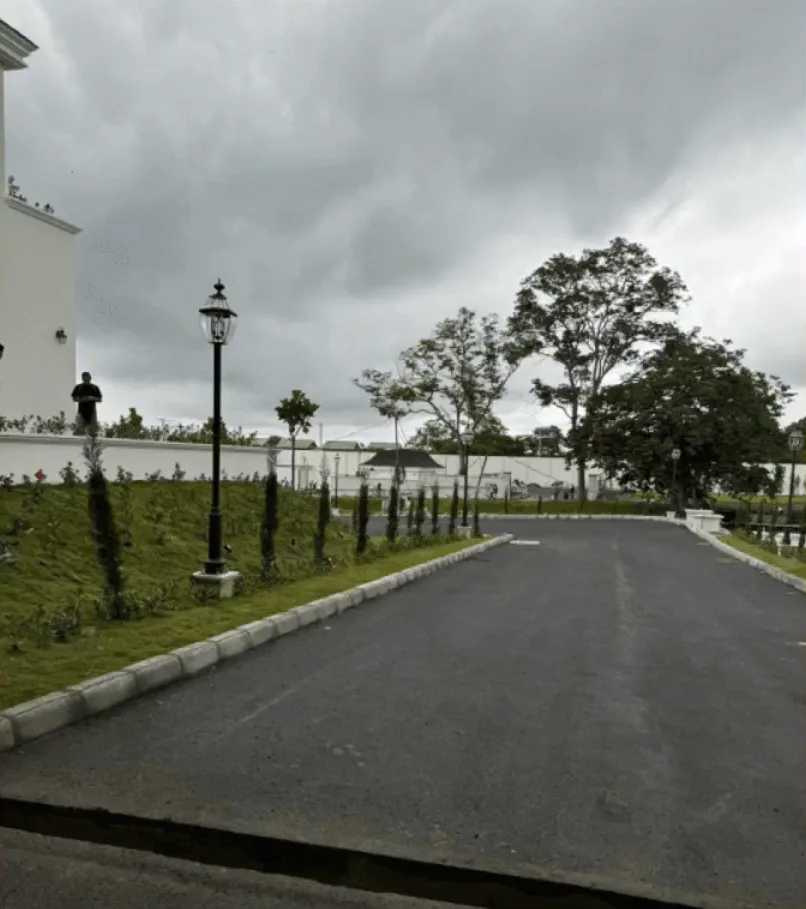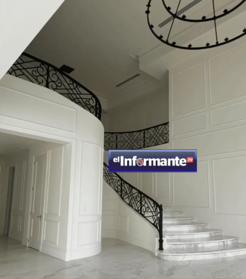 La residencia incluye amplias terrazas para fiestas, espacios diseñados para recibir invitados, así como casas de seguridad para escoltas y sistemas de vigilancia.