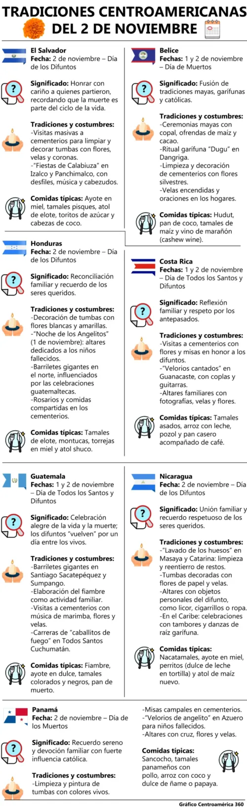 Hoy, mientras las flores llenan los cementerios y las oraciones se elevan en los templos, Centroamérica honra a sus seres queridos con respeto, cariño y tradición, reafirmando que la memoria sigue viva en cada hogar y comunidad.