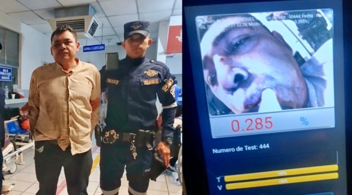 Agentes de tránsito realizaron una prueba de alcotest al conductor después del accidente. El examen arrojó un resultado de 285 grados de alcohol, un nivel que confirma conducción peligrosa bajo efectos del alcohol.