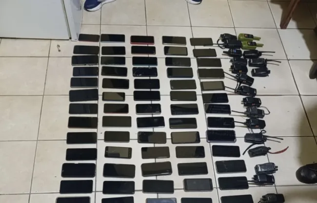 Durante la requisa, los agentes localizaron 116 teléfonos celulares. Además, encontraron 20 radios transmisores portátiles y varios cargadores para dispositivos móviles.