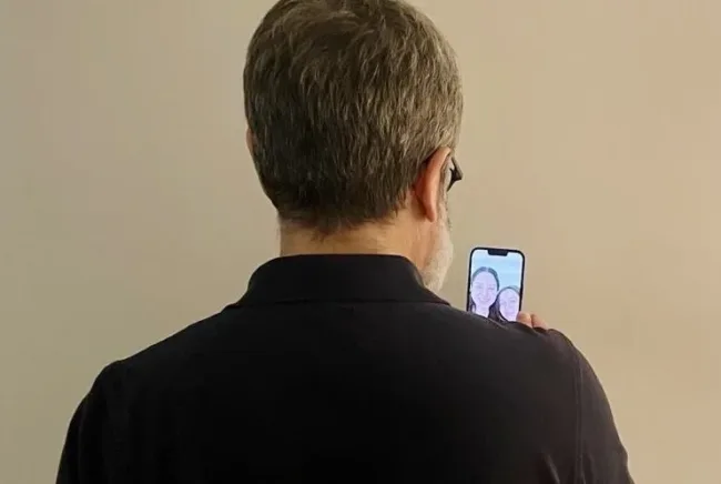 En la fotografía, Hernández aparece de espaldas con una camisa tipo polo negra. Luce una barba blanca poblada mientras conversa por videollamada con sus dos hijas. La imagen muestra el primer contacto visual de la familia tras el indulto presidencial.