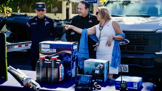 El donativo incluye 2 botes inflables, 2 motores de borda, 3 camionetas tipo pick-up y 3 dispositivos TruNarc, los cuales permiten identificar sustancias sospechosas de forma rápida.