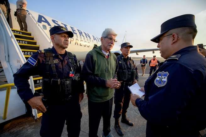 Quijano, de 79 años, fue entregado en el aeropuerto Monseñor Romero a la Policía Nacional Civil de El Salvador, tras ser detenido por autoridades migratorias estadounidenses.