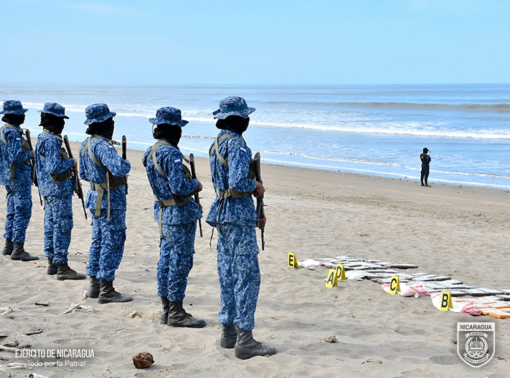 El Ejército sandinista informó este lunes que incautó 82 paquetes de cocaína durante un operativo realizado el 12 de abril en Playa Quizalá, en el municipio de San Rafael del Sur, departamento de Managua, en la costa del Pacífico.