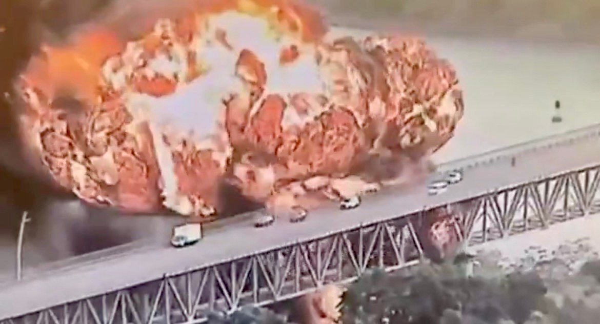 Por una explosión masiva de un camión cisterna cerca del Puente de las Américas en Ciudad de Panamá, Panamá, propaga el fuego a otras dos unidades en el parque de tanques de Balboa. pic.twitter.com/Av3bieUkaX