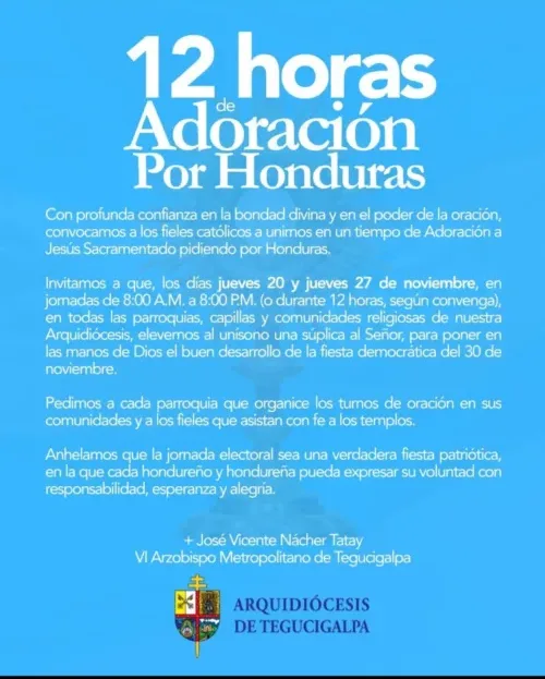 Con esta iniciativa, la Iglesia Católica pretende acompañar a la población hondureña y promover un clima de serenidad previo a los comicios, en un contexto en el que las autoridades electorales buscan garantizar un proceso ordenado y confiable.