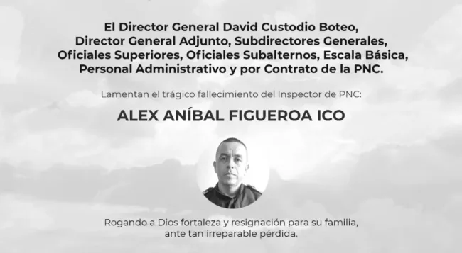 La Policía Nacional Civil expresó su profundo pesar por la pérdida del inspector Figueroa, quien tenía años de servicio en la institución. “Su entrega en el cumplimiento del deber refleja el compromiso de nuestros agentes con la seguridad ciudadana”, señaló la entidad en un comunicado interno.