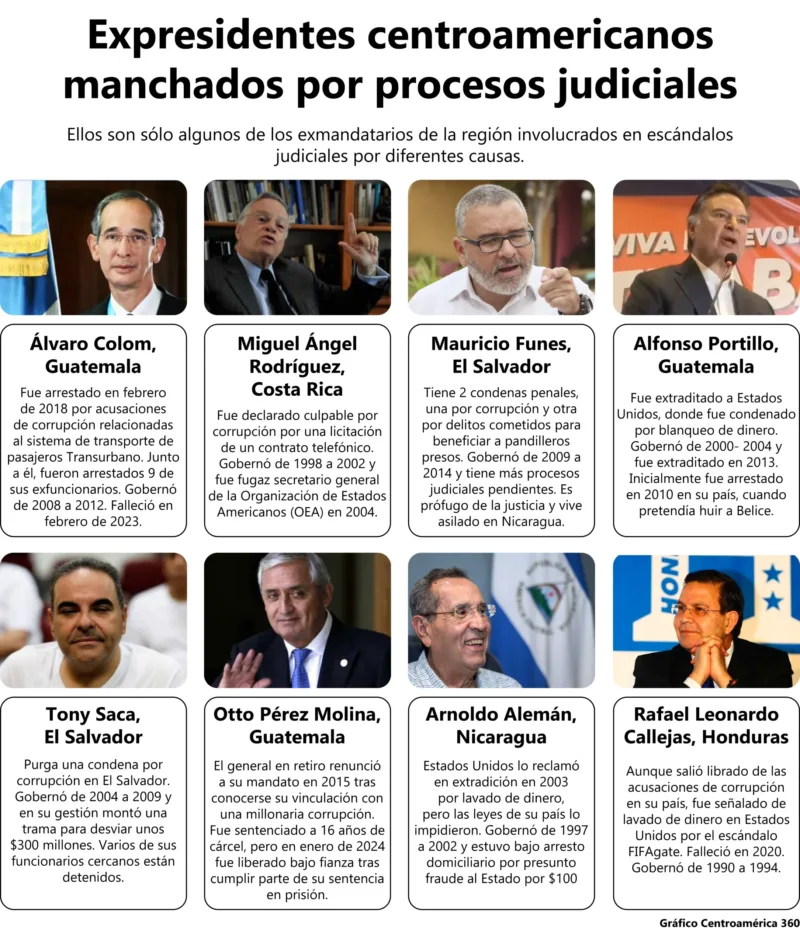 Centroamérica tiene un largo listado de exmandatarios involucrados en procesos judiciales por corrupción y otros delitos.