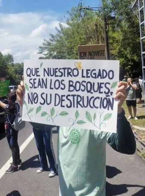 Una de las protestas de grupos ambientalistas en contra de la construcción de un centro de convenciones financiado por China en una reserva ecológica cercana a San Salvador.