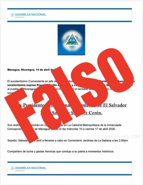Además, el mensaje falso incluía detalles sobre velación y sepelio. Sin embargo, el FMLN aclaró que la información no es verídica.