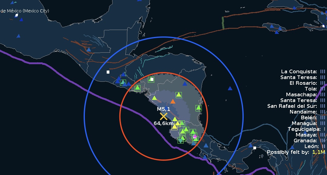 Sismo de magnitud 4.6 en Nicaragua fue sensible en algunas regiones de Costa Rica