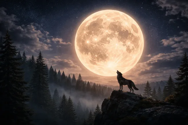 La luna llena de enero recibe el nombre de Luna del Lobo por tradiciones registradas en calendarios agrícolas del hemisferio norte.
