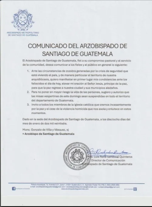 Comunicado del Arzobispado de Santiago de Guatemala.